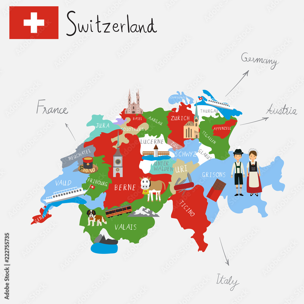 Valokuva Hand drawing Switzerlamd maps with hand lettering