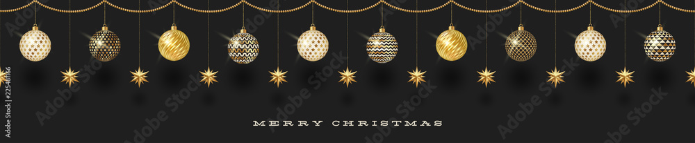 Valokuva Seamless frieze with Christmas decoration - patterned baubles with golden stars