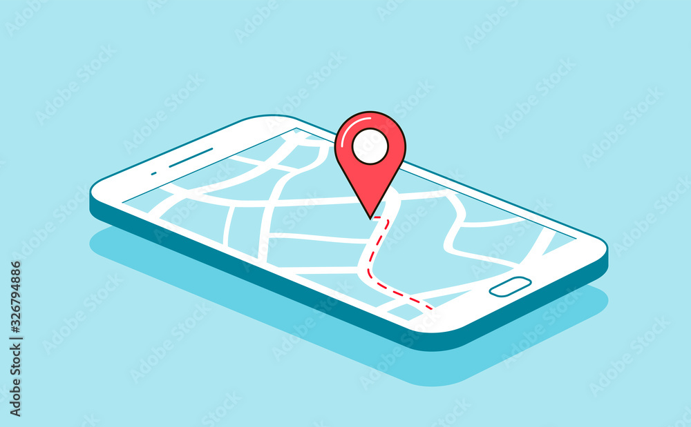 Valokuva GPS navigation or route with check-in symbol on screen of mobile phone