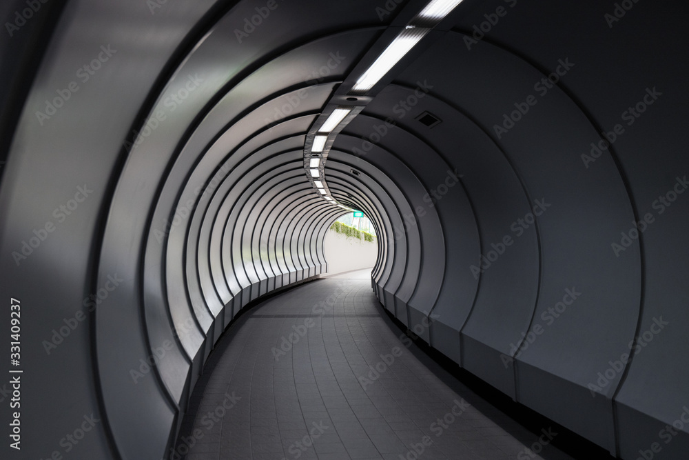 Valokuva Curved walkway towards the exit from pedestrian crossing tunnel.