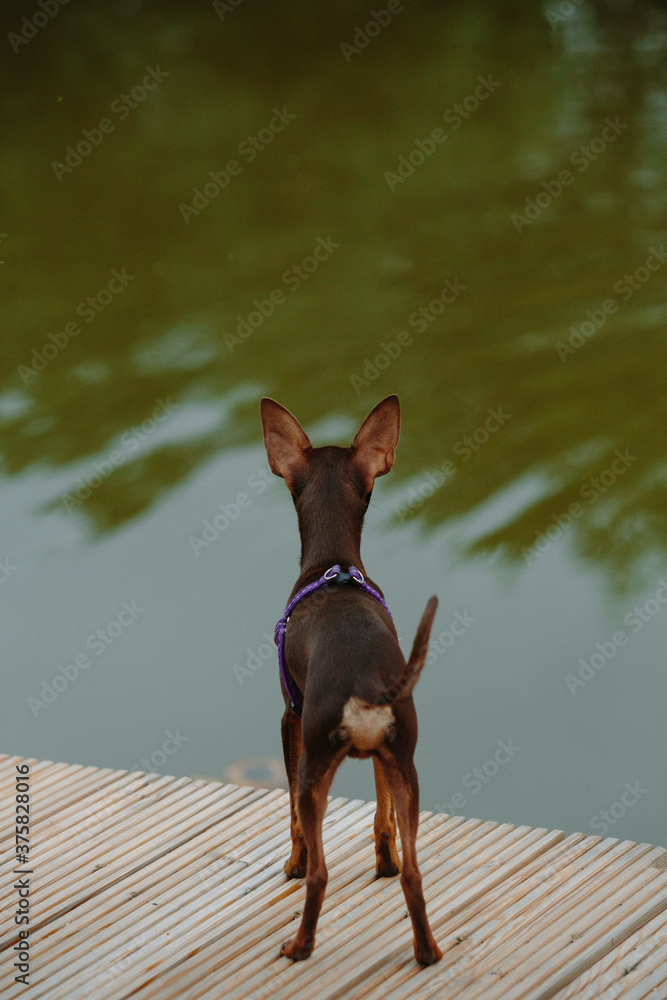 Valokuva Cute Prague ratter playing outdoors at daytime