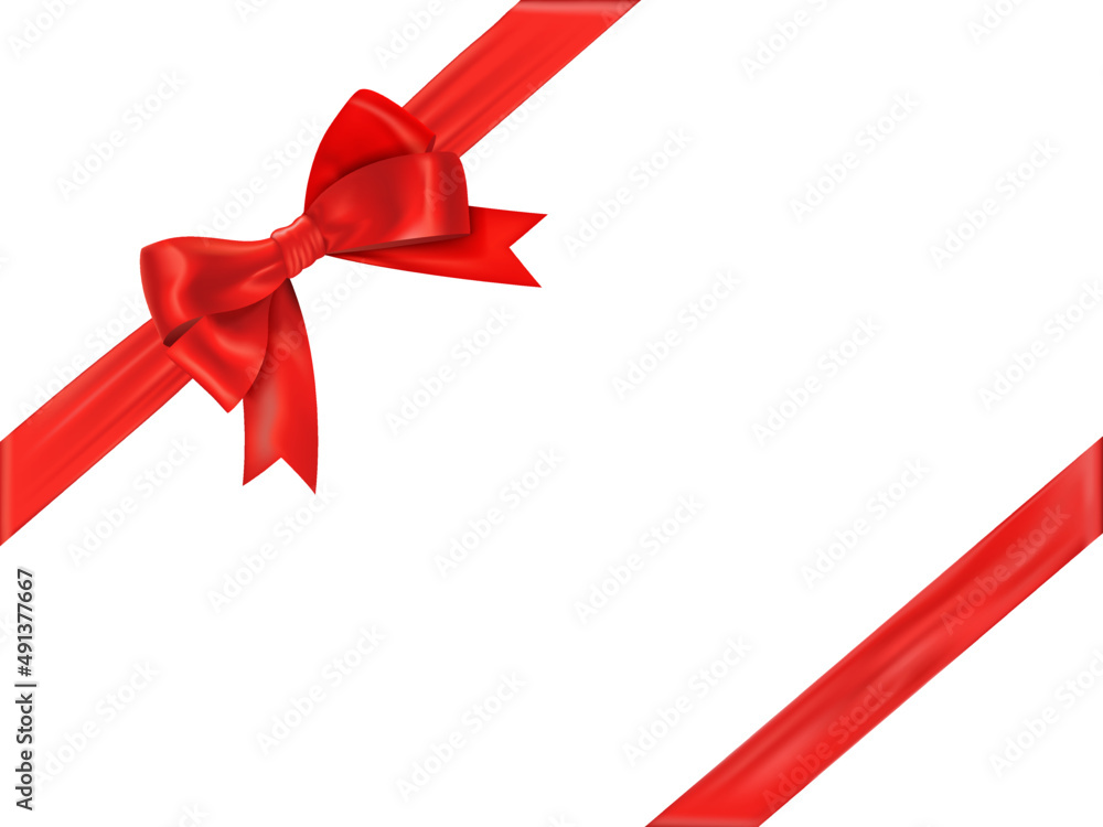 Valokuva Red bow and ribbon. Realistic holiday decoration