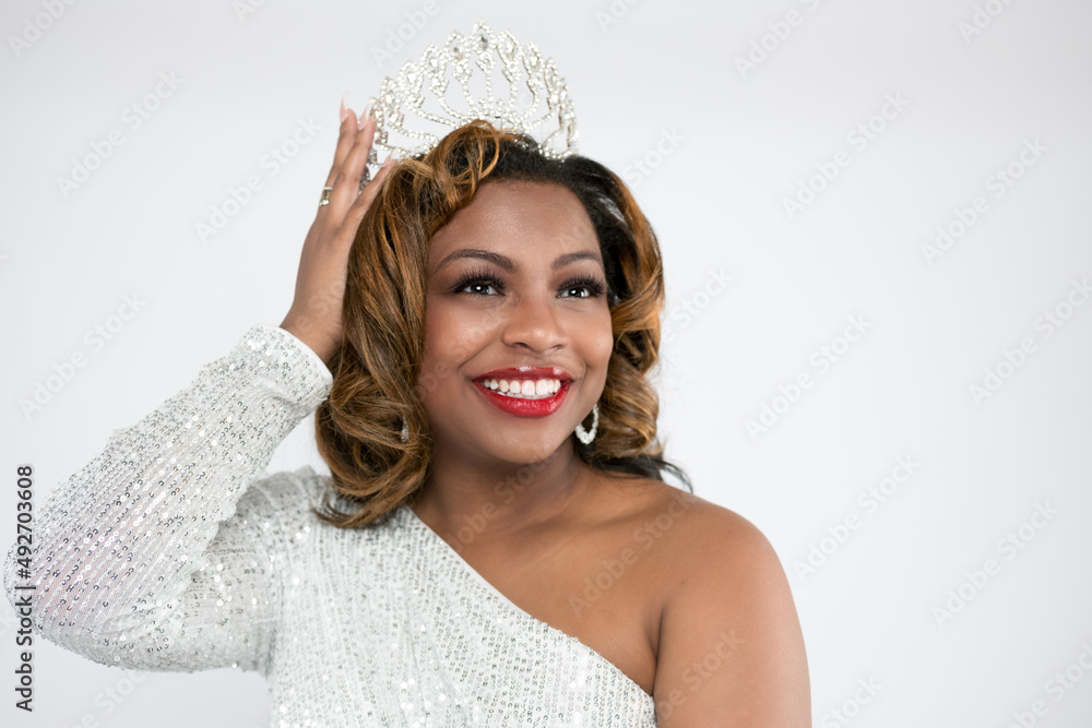 Valokuva Young African-American Woman Wearing a Crown in a White Dress