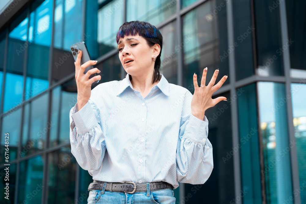 Valokuva Portrait of a young woman talking in anger on her mobile to her boyfriend about