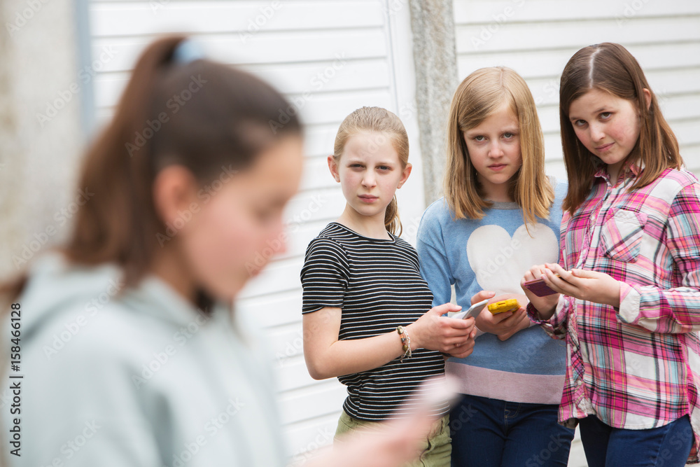 Valokuvatapetti Pre Teen Girl Being Bullied By Text Message