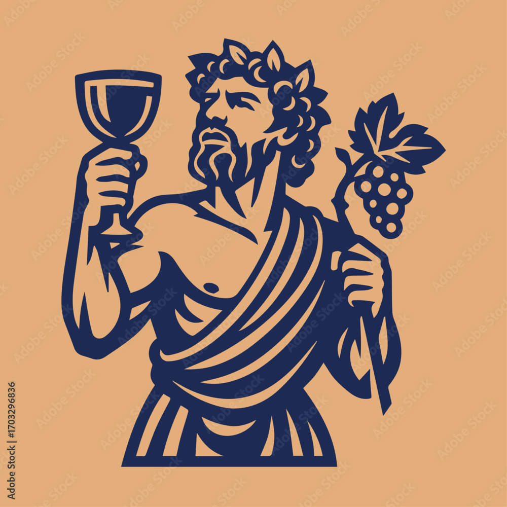 Valokuvatapetti Roman God of Wine with Goblet and Vine Branch