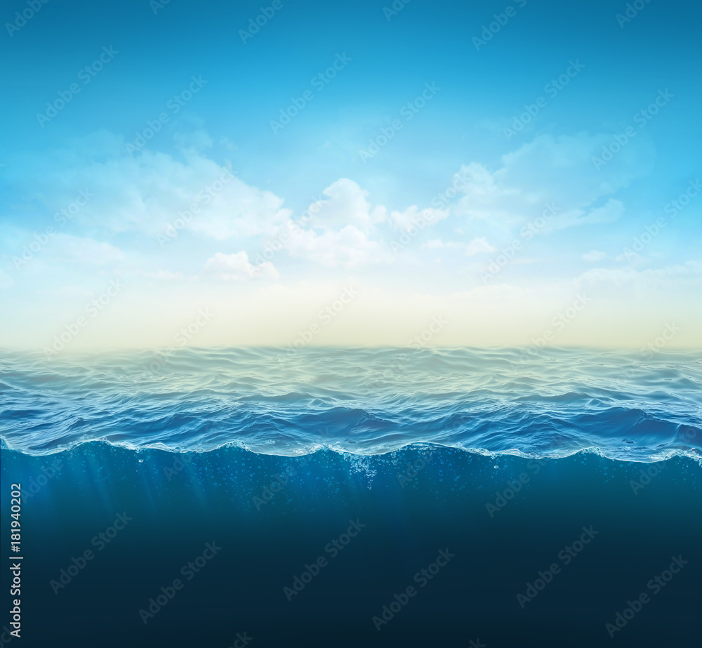 Valokuvatapetti cross section water, ocean slice, water column. 3d illustration