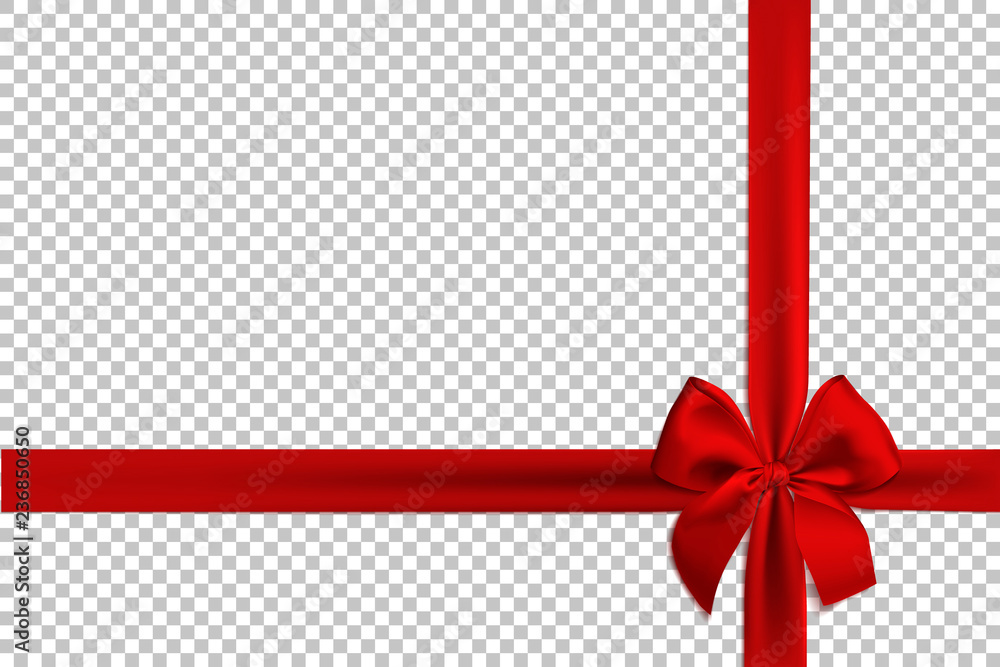 Valokuvatapetti Realistic red bow and ribbon isolated on transparent background