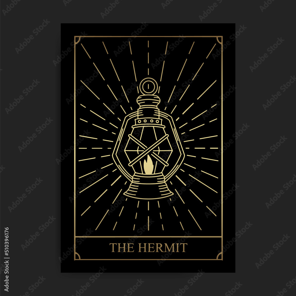 Valokuvatapetti The hermit magic major arcana tarot card in golden hand drawn style
