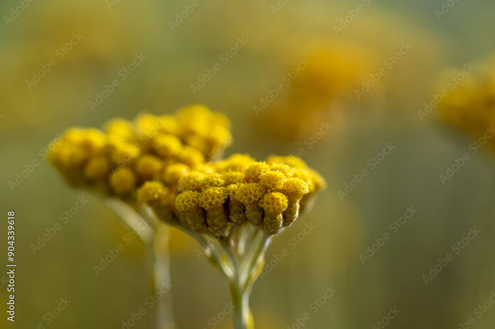 Valokuvatapetti Detail of yellow flowers of immortelle or everlasting (Helichrysum arenaria) ill