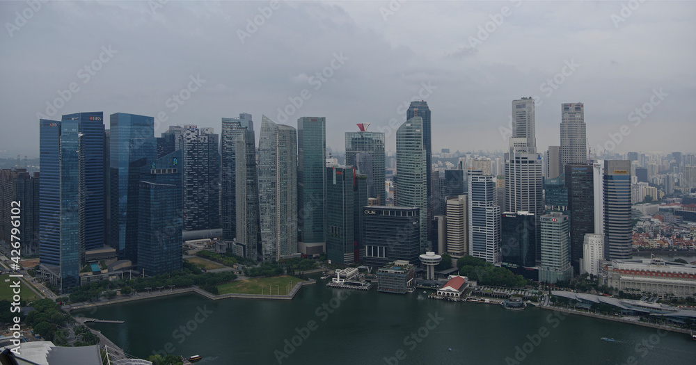 Canvas-taulu View of Collyer Quay from the observation deck of the hotel Marina By Sands