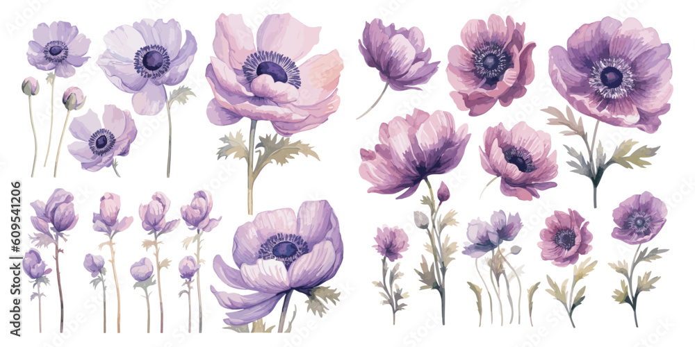 Canvas-taulu watercolor purple anemone flower clipart for graphic resources